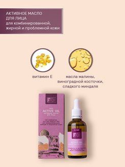 Активное масло - это сбалансированный моноуход или дополнительная доза в ваш крем для усиления его действия. Синергетическое действие масел виноградной косточки, сладкого миндаля и малины усиливают действие друг друга, нормализуют себорегуляцию, препятствуют развитию акне, сужают поры. Витамин Е борется с воспалительными процессами и снимает стресс кожи.