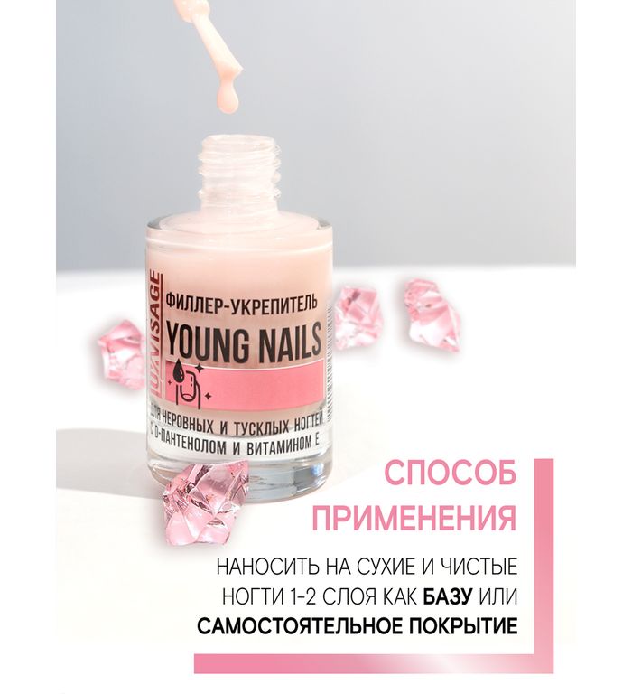 Филлер-укрепитель Lux visage Young Nails для неровных и тусклых ногтей с D-пантенолом и витамином Е